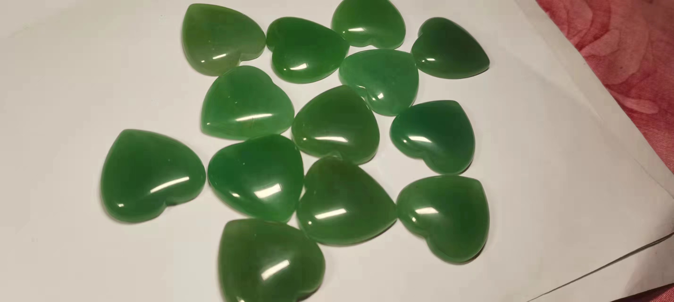 天然绿玉髓裸石戒面 爱心形6mm 8mm 9mm 裸石代加工珠宝首饰